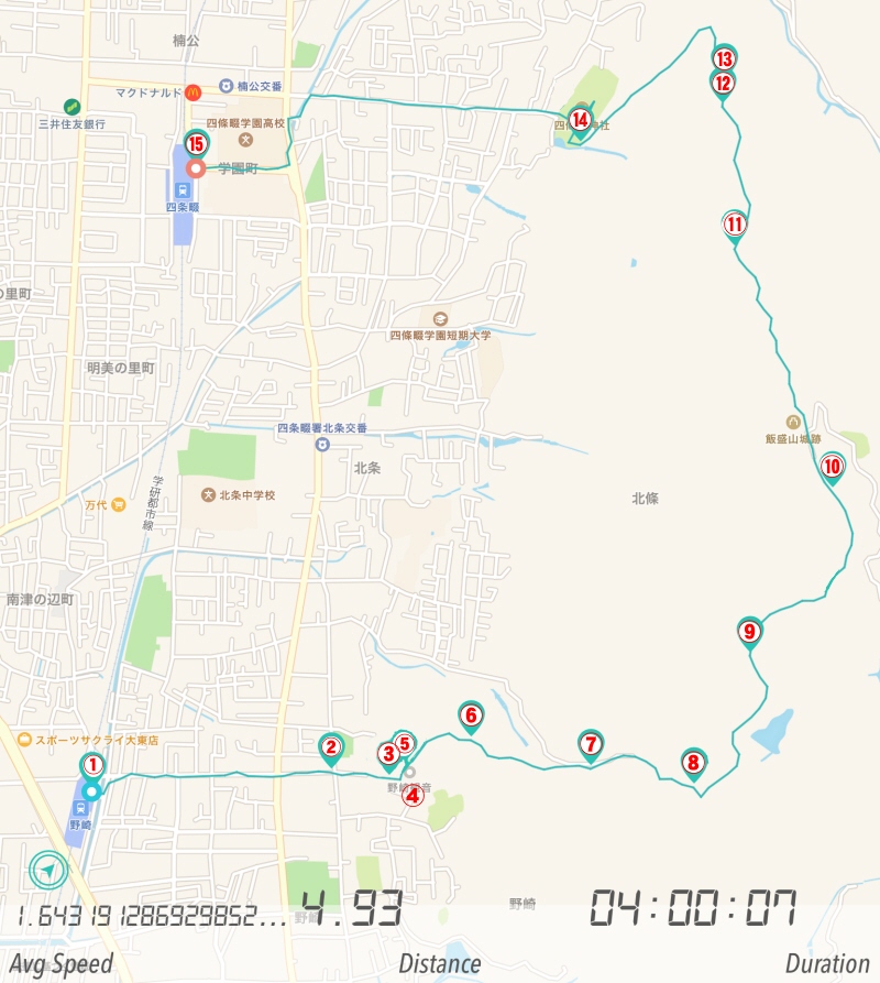 帰りは近鉄生駒線の「信貴山下駅」へ 歩き足りない一部の人はJR「王寺駅」まで 約8kmの行程です |