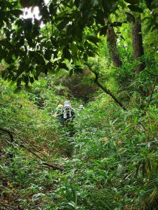 舗装路からいきなり藪の中 |
